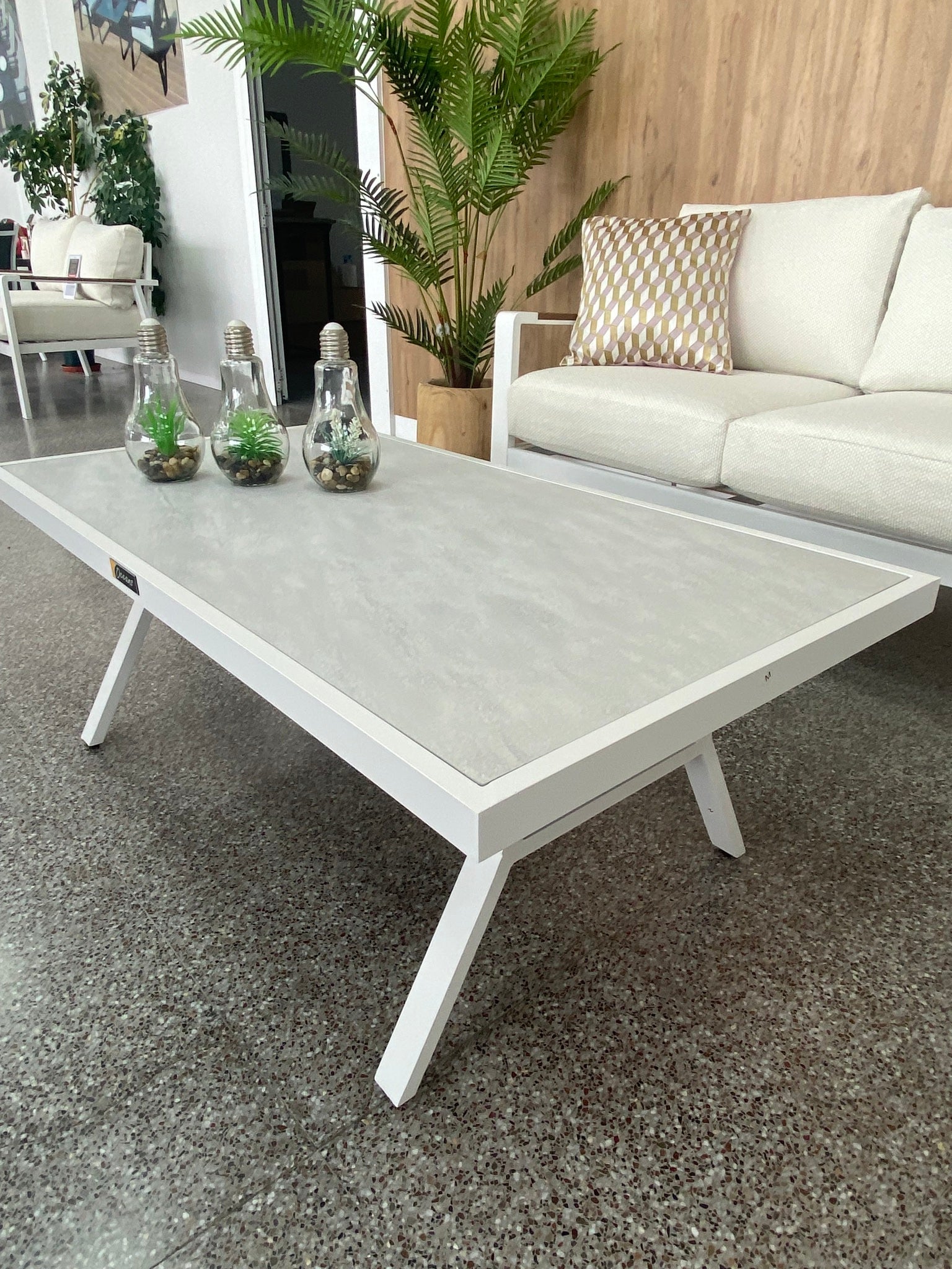 comfort and style with our Malibu 3 Seat Sofa Set. Aluminium frame with honey comb resin table top