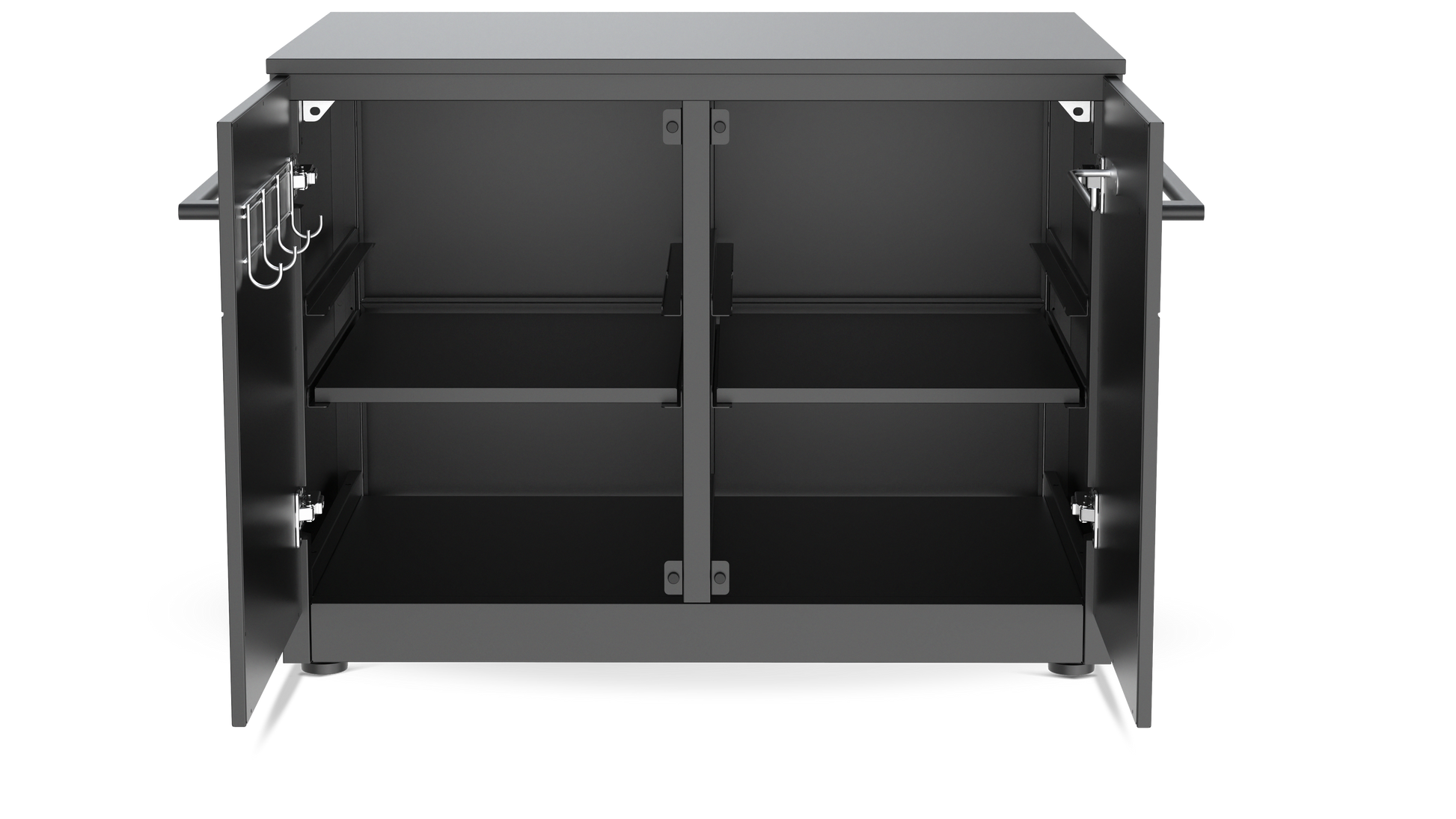 90cm Low Module: Zink plated & mat black colour powder coated, high pressure laminate doors and aluminium door handles