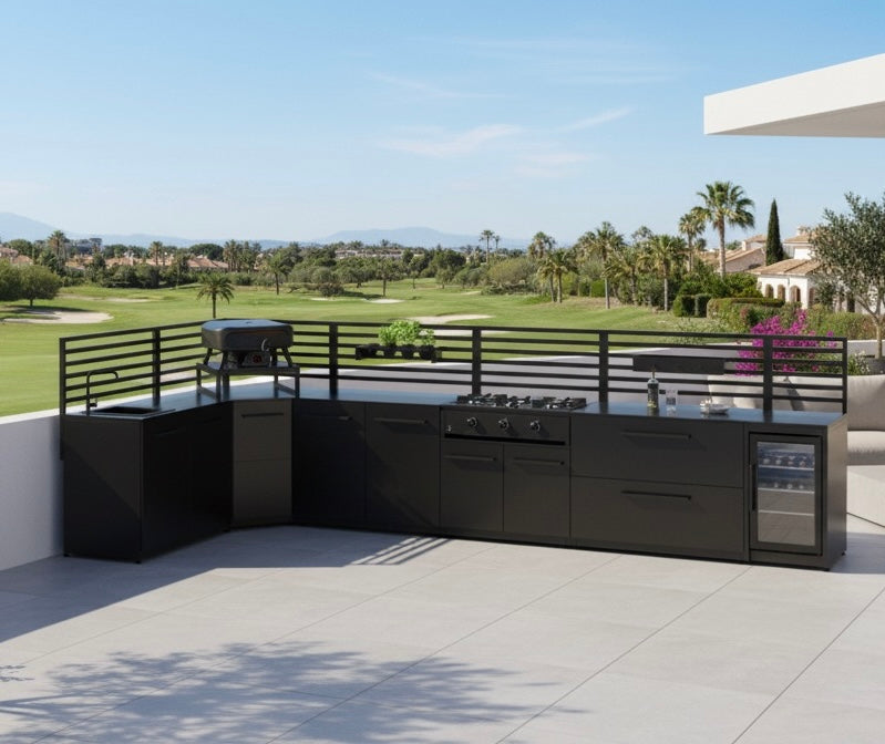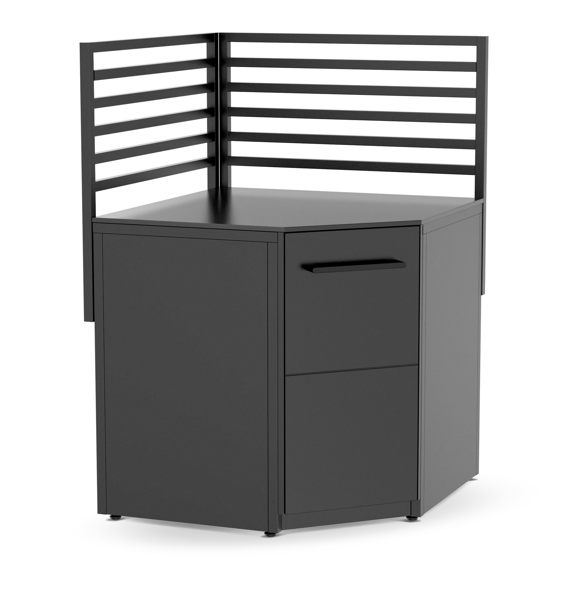 110cm With Sink: Zink plated & mat black colour powder coated, high pressure laminate doors and aluminium door handles