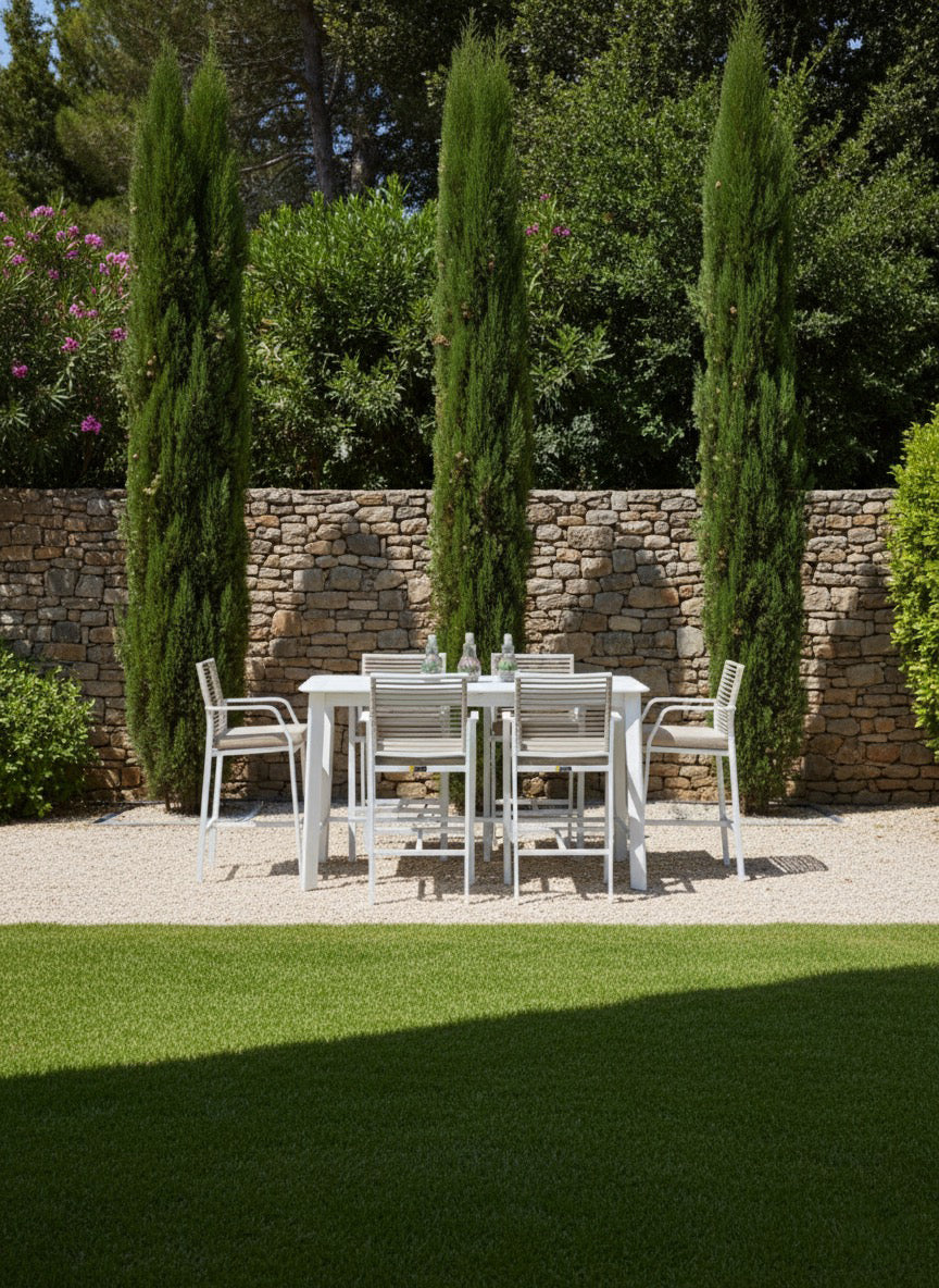 This elegant high-quality bar set is crafted from premium powder-coated aluminium, ensuring durability, weather resistance, and long-lasting beauty. Combining modern aesthetics with exceptional comfort. The tall slatted bar table offers ample space for dining, entertaining, or casual drinks, while the matching bar stools include supportive armrests and comfortable cushions for an elevated seating experience. Perfect for patios, terraces, or garden bars, this set adds sophistication and functionality to any setting. Built for strength and style, it’s the ideal choice for luxurious outdoor living.